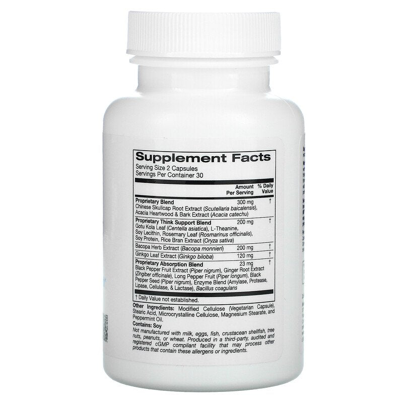 Zoi Research Think Support features botanicals such as Chinese Skullcap Root, Acacia Heartwood, Bacopin® Bacopa and Ginkgo biloba combined with a Proprietary Think Support Blend with Suntheanine® L-Theanine, as well as a Proprietary Absorption Blend, formulated to support memory and cognitive health.*